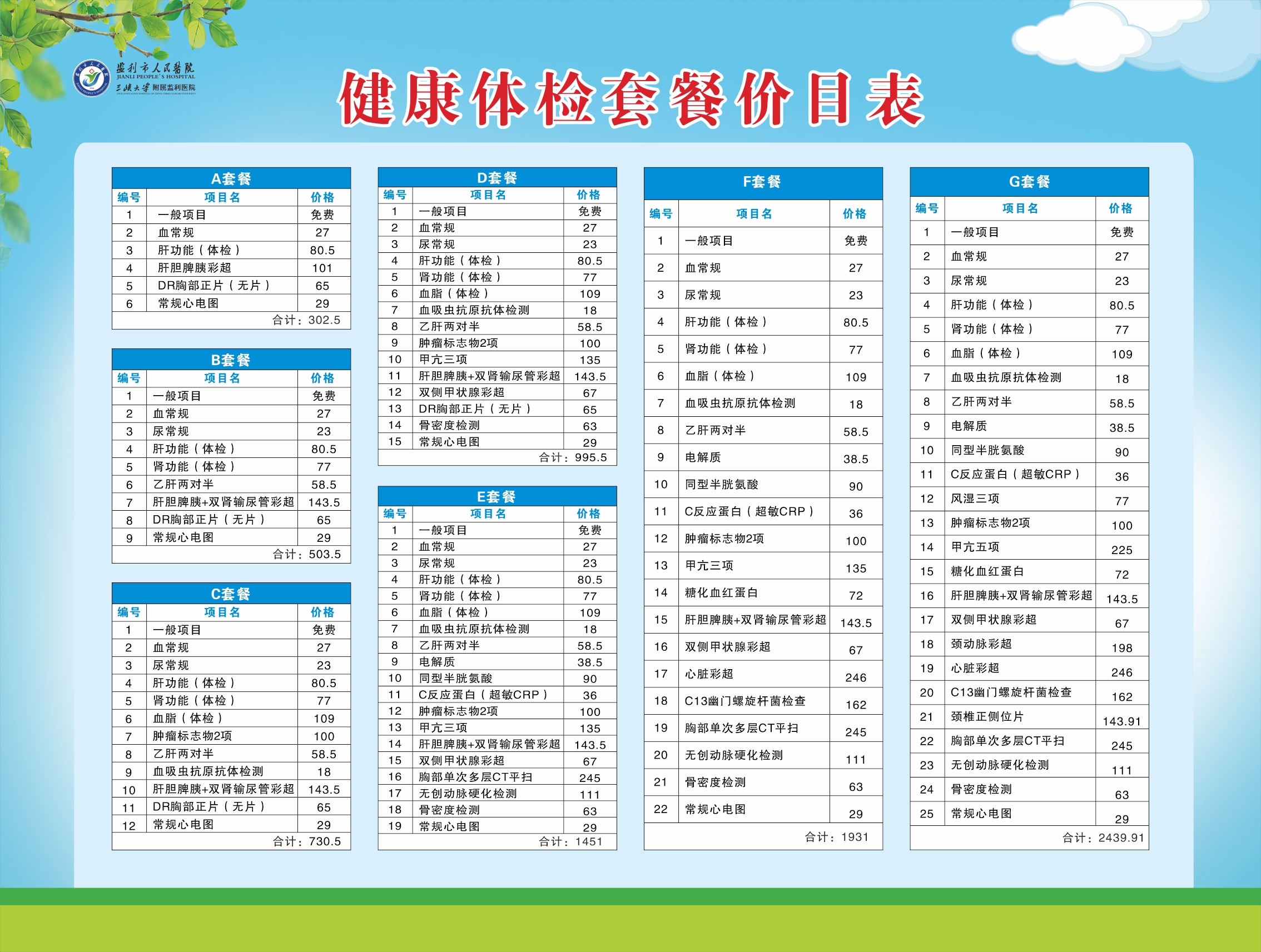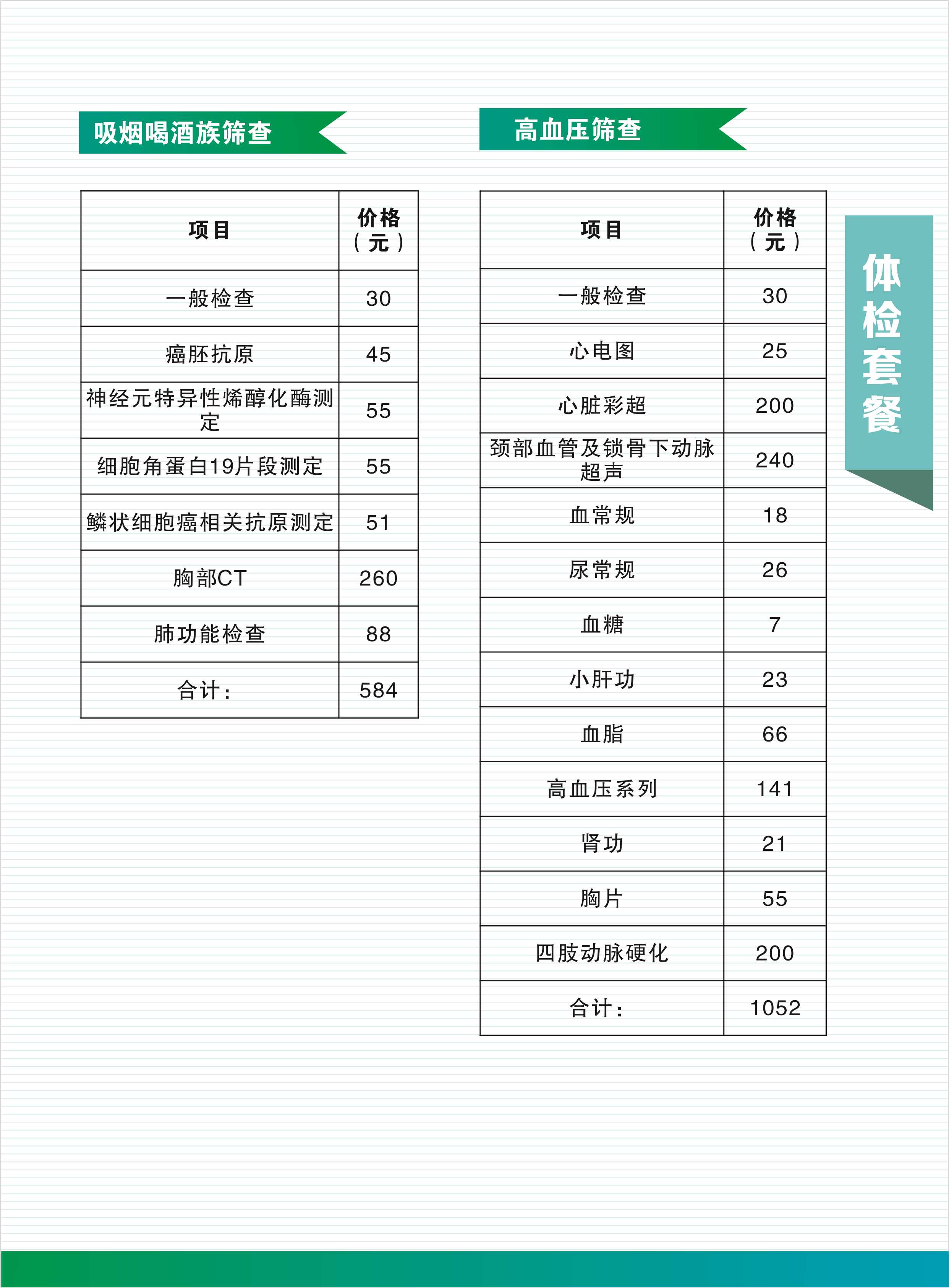 1. 常規(guī)體檢套餐項(xiàng)目及價(jià)格